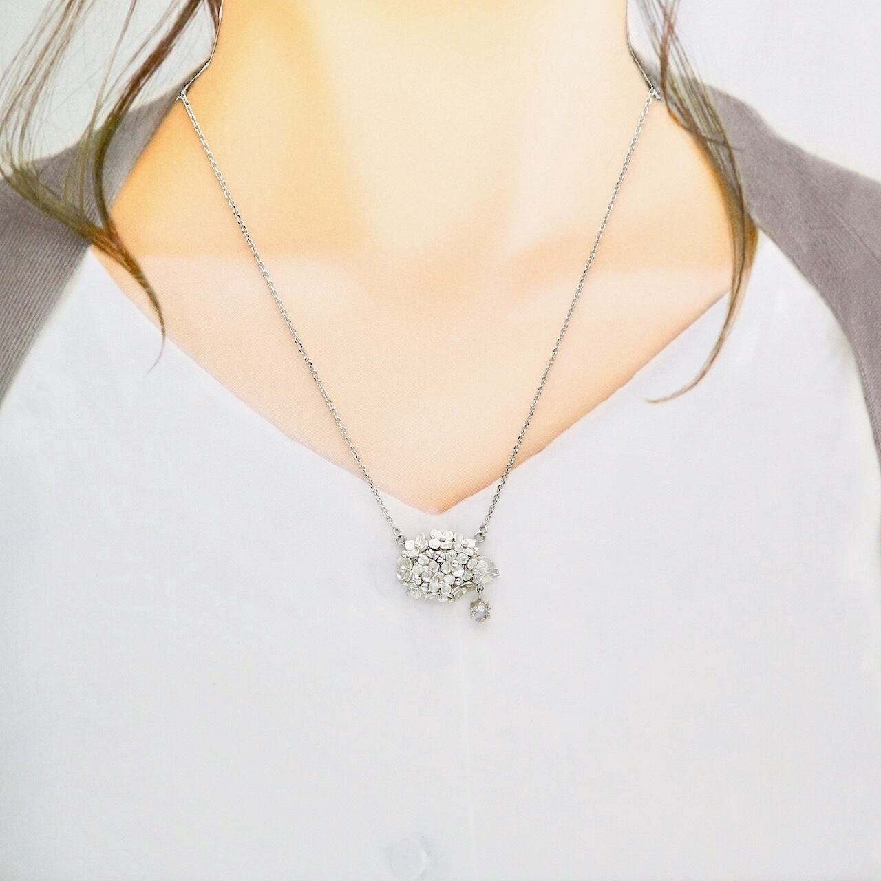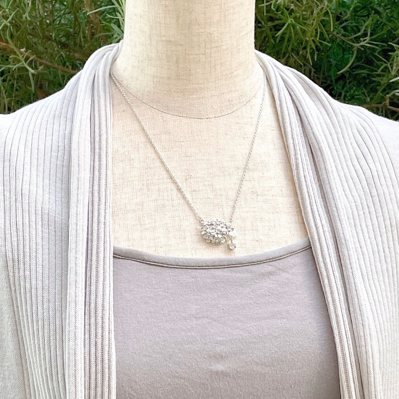 コロンとしたフォルムのあじさいのペンダントです。